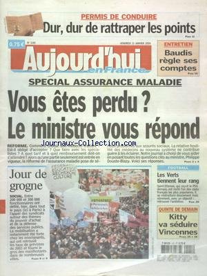 AUJOURD'HUI EN FRANCE [No 1149] du 21/01/2005 - PERMIS DE CONDUIRE - DUR DE RATTRAPER LES POINTS - BAUDIS REGLE SES COMPTES - SPECIAL ASSURANCE MALADIE - VOUS ETES PERDU LE MINISTRE VOUS REPOND - LES CONFLITS SOCIAUX - FOOT - LES VERTS TIENNENT LEUR RANG