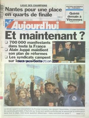 AUJOURD'HUI [No 15941] du 06/12/1995 - LES CONFLITS SOCIAUX - ALAIN JUPPE ET LES SYNDICATS - LIGUE DES CHAMPIONS